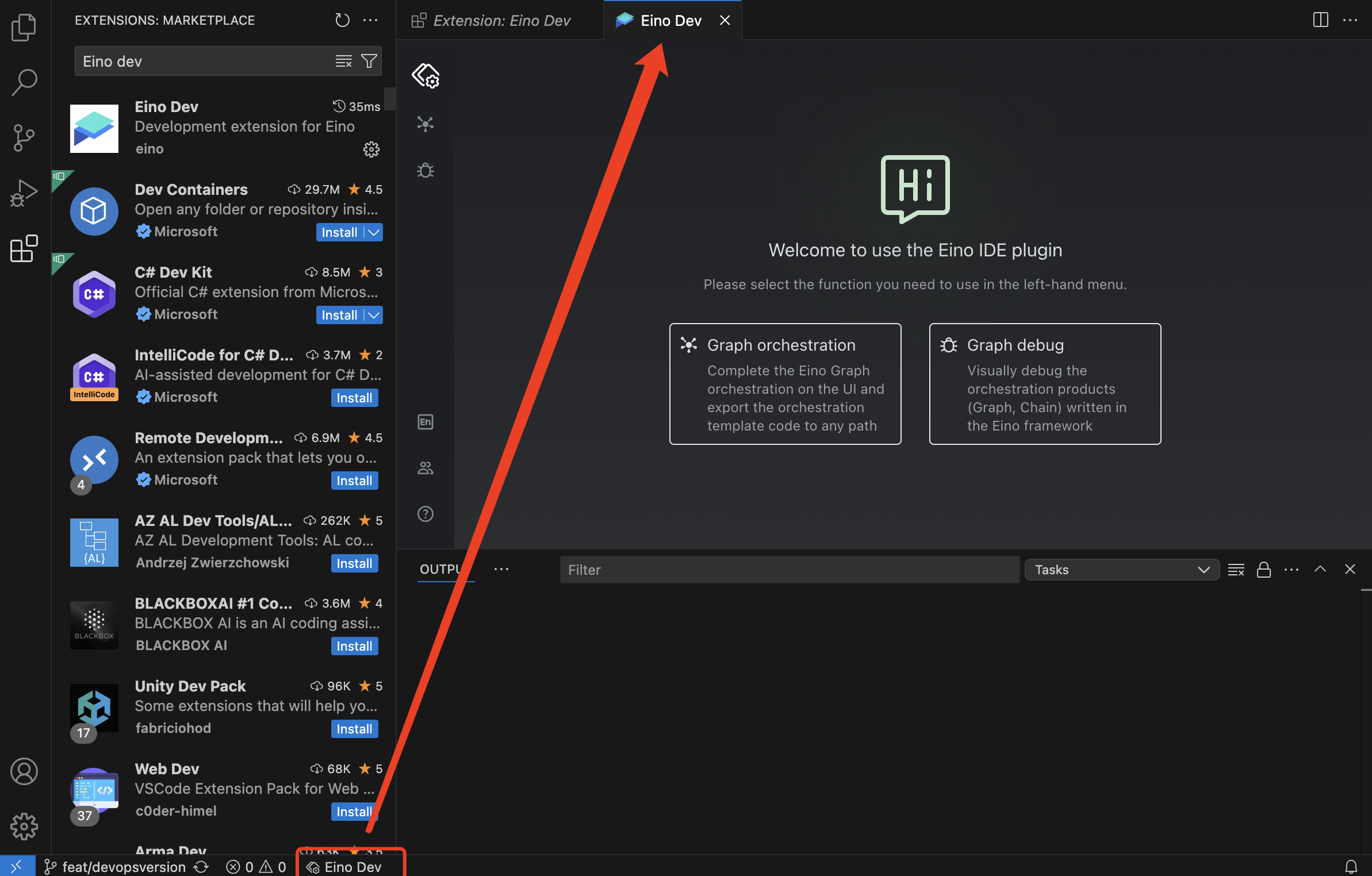 • Find the “Eino Dev” icon in the right sidebar and click it: